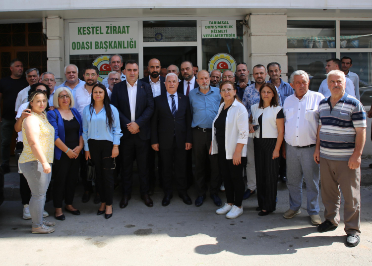 İlk olarak Kestel’de yapımı yarım bırakılan Çataltepe Sanayi Sitesi’nde Çataltepe mağdurlarıyla bir araya gelen Başkan Mustafa Bozbey’e temaslarında CHP Kestel İlçe Başkanı Taner Hoş da eşlik etti. 15 yıldır inşa edilmeyen sanayi sitesinin konumu ve projesi itibariyle küçük esnafa büyük zararlar verdiğini belirten Başkan Bozbey, Bursa Büyükşehir Belediyesi olarak ellerinden gelen desteği vererek mağdur esnafı desteklemeye, adaletin oluşmasına kadar yanlarında olmaya ve sonrasında emeklerinin karşılığını almaları için desteklemeye devam edeceklerini ifade etti. Daha sonra Kestel Kaymakamı Recep Öztürk’ü ziyaret eden Mustafa Bozbey, küçük esnafın büyük sorunlar yaşadığı Çataltepe Sanayi Sitesi’nde yaşanan mağduriyetin çözümü için ortaklaşa çalışmalar yapılması gerektiğini söyledi. Kestel Muhtarlar Derneği’ni de ziyaret eden Başkan Mustafa Bozbey, muhtarların talep ve önerilerini dinleyerek mahalle ve köylerin sorunlarını ve çözümlerini görüştü. Kestel Belediye Başkanı Ferhat Erol’u da makamında ziyaret eden Başkan Mustafa Bozbey, ilçenin en başta gelen sorunlarından olan hava kirliliğinin çözülmesine ve kentin sosyal ve kültürel gelişmesini sağlayacak projelerin yapılmasına yönelik ortaklaşa yürütülecek çalışmaları görüştü. Başkan Bozbey, son olarak Kestel Ziraat Odası’nı ziyaret ederek çiftçilerin görüş ve düşüncelerini birinci ağızdan dinledi.