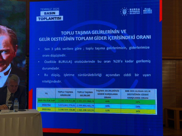 Bursa Büyükşehir Belediye Başkanı Mustafa Bozbey Temmuz ayı ve gündem değerlendirme toplantısı için Merinos AKKM'de basın mensuplarıyla bir araya geldi. Başkan Bozbey, "Ekonomik şartlara bakarak düzenleme yapmanın kaçınılmaz olduğunu belirtmek isterim. Ekonomik koşulların zorlaştığı bu ortamda yalnızca bir kentte değil, her kentte sürdürülebilirliği tartışılmaktadır" dedi.