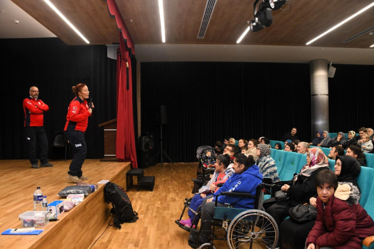 Konuşmaların ardından Başkan Erkan Aydın, Osmangazi Kent Konseyi Engelliler Meclisi ve OBAM üyeleriyle yakından ilgilenerek hatıra fotoğrafı çektirdi. Bunun yanı sıra program sonunda Osmangazi Belediyesi Afet İşleri Müdürlüğü ekipleri tarafından katılımcılara afet farkındalık eğitimi verildi. Eğitimi özveriyle takip eden engelli bireyler, afetlerin oluşum nedenleri, risklerin nasıl azaltılabileceği, afetlerde önem taşıyan davranış biçimleri konularında bilgilendirildi.