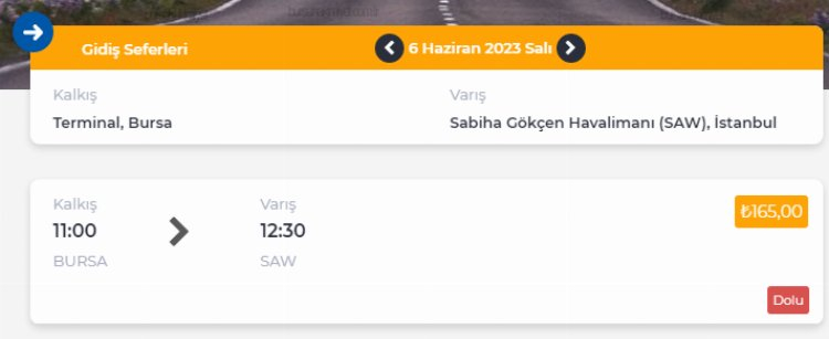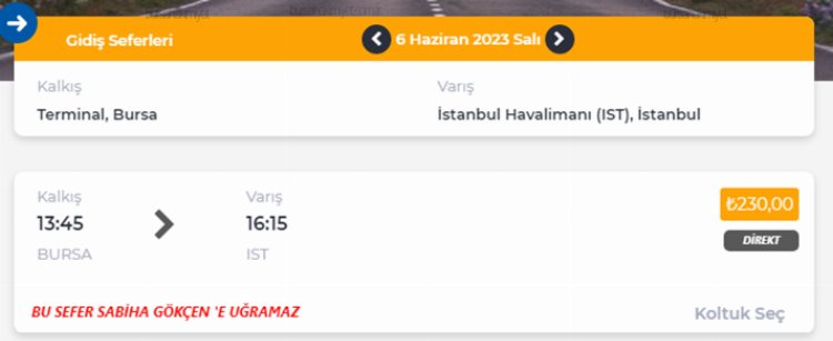 BURSA TERMİNAL - SABİHA GÖKÇEN HAVALİMANI