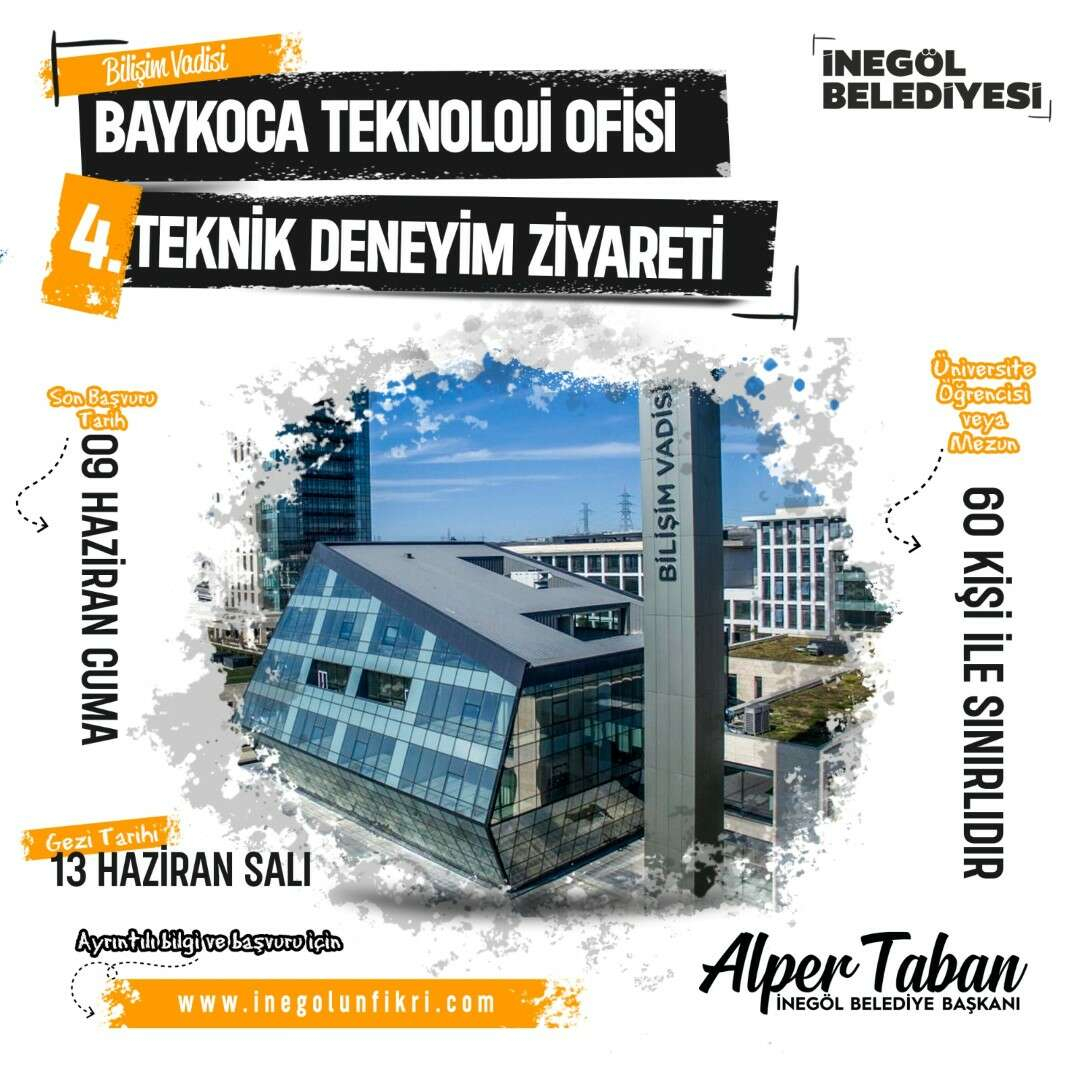 İnegöl Belediyesi, Baykoca Çalışma Ofisinin açılmasının ardından yerli ve milli teknoloji hamlesine katkı sunan çalışmalarının olgunlaştırılarak hayata geçirildiği Bilişim Vadisine Teknik Deneyim Gezileri düzenlemeye başladı. Amacı yerli ve milli teknoloji hamlesi çalışmalarına katkı sunan vizyoner projelerin bilim meraklıları ve özellikle gençler tarafından yerinde incelenmesi, teknoloji odaklı fırsat ve imkanların yerinde görülmesi, kariyer adımlarında gençlerin karar vermesine katkı sunmak ve İnegöl’ün bu alanda yaptığı çalışmalara dair farkındalık oluşturmak olan gezi, daha önce 3 defa gerçekleştirildi. Haziran ayında yapılacak Bilişim Vadisi Baykoca Teknoloji Ofisi 4. Teknik Deneyim Ziyareti için de kayıtlar alınmaya başladı.