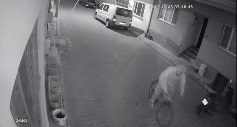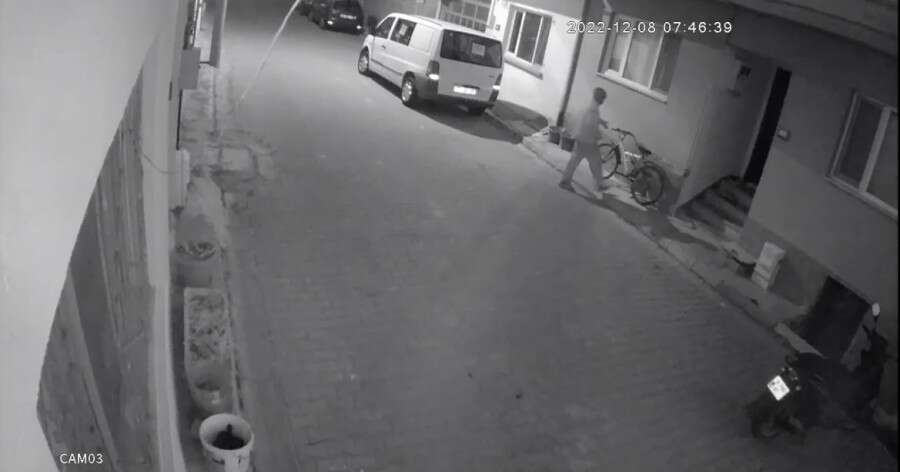 Kimliği belirsiz bir kişi evin önünde bulunan bisiklete doğru rahat bir şekilde yanaştı, binerek çaldı ve kaçtı.