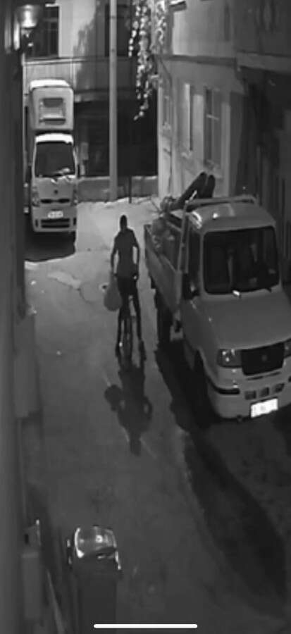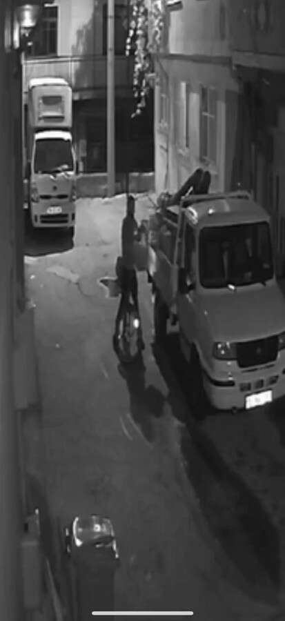 Bisikletli hırsız kamyonetin kasasından çaldığı malzemelerle kayıplara karıştı