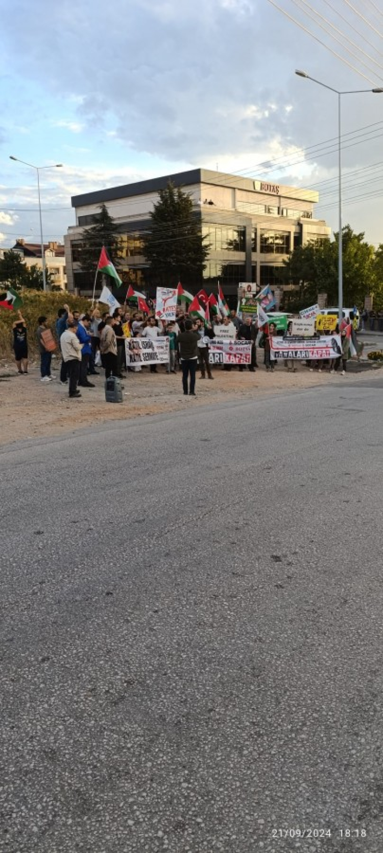 Bursada Bugün ihbar hattına gelen bilgilere göre bir grup vatandaş Boru Hatları İle Petrol Taşıma Anonim Şirketi'nin (BOTAŞ), İsrail'e petrol ihraç ettiği iddiaları sonrası Osmangazi ilçesi Hamitler'de bulunan BOTAŞ Bursa Şube Müdürlüğü önünde pankart açarak eylemde bulundu.