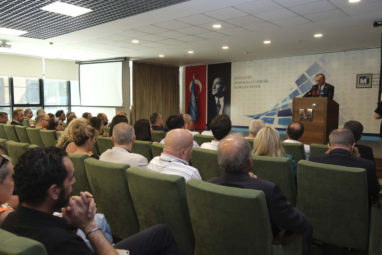 Devir teslim töreninin açılış konuşmasını yapan BSMMMO Başkanı Hüseyin Halil, “Genel kurul ve seçimlerimizin ardından görev dağılımlarımızı gerçekleştirdik ve yeni hizmet dönemimize adım attık. ‘Birlikte olanlar güçlüdür’ diyerek çıktığımız bu yolda kıymetli teveccühlerinizle yeniden hizmet bayrağını taşıyacak olmanın gururu ve mutluluğu içindeyiz. Bugün burada, sadece bir devir teslim töreni değil; aynı zamanda istikrarın, devamlılığın ve emekle kazanılmış bir güvenin tescilini yaşıyoruz. Bugün bu salonda sizlerle birlikte olmamız; geride bıraktığımız 3 yıllık hizmet dönemimizdeki özverili çalışmaların, mesleğimizin gelişimi adına attığımız kararlı ve cesaretli adımların, siz kıymetli üyelerimizle kurduğumuz açık ve samimi iletişimin bir sonucudur. Yönetim anlayışımızın üyelerimiz nezdinde karşılık bulması ve bugün yeniden bu göreve layık görülmüş olmak; büyük bir gurur, aynı zamanda büyük bir sorumluluk. Bu vesile ile sizlerin de huzurlarında; genel kurulumuza katılan, katkı veren, eleştirilerini ileten ve en demokratik hakkı olan oy kullanma hakkını kullanarak bu sürece dahil olan tüm meslektaşlarıma da katkı ve teveccühlerinden dolayı bir kez daha teşekkürlerimi sunuyorum” dedi.
