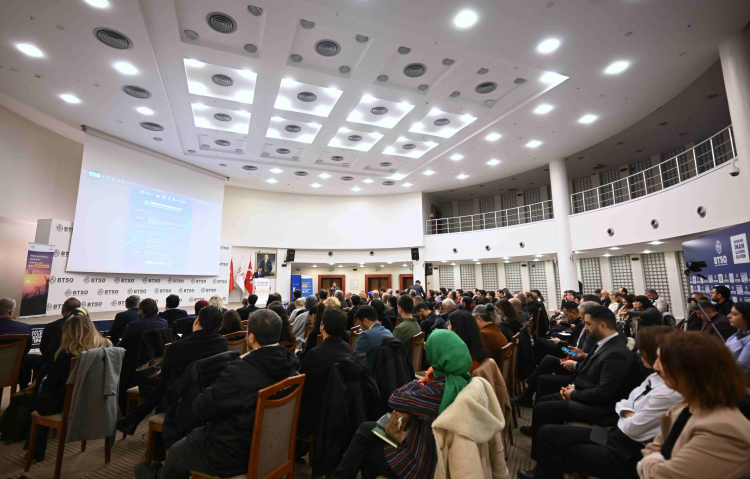 Bursa iş dünyasının dijital dönüşüm süreçlerine katkı sağlamak, KOBİ’lerin ulusal ve uluslararası destek mekanizmalarına erişimini artırmak ve yeni iş birliklerinin geliştirilmesine zemin hazırlamak amacıyla “Dijital Dönüşüm ve Uluslararası İş Birliği Fırsatları” etkinliği BTSO Ana Hizmet Binası’nda düzenlendi. Avrupa İşletmeler Ağı kapsamında organize edilen; BTSO Meclis Başkan Yardımcısı Metin Şenyurt, KOSGEB Başkanı Ahmet Serdar İbrahimcioğlu ve Sanayi ve Teknoloji Bakanlığı AB ve Dış İlişkiler Genel Müdürü Ahmet Halit Hatip’in açılış konuşmalarıyla başlayan program kapsamında Sanayi ve Teknoloji Bakanlığı, TÜBİTAK ve KOSGEB temsilcileri tarafından Dijital Avrupa Programı, Avrupa Dijital İnovasyon Merkezleri, Avrupa İşletmeler Ağı, EuroHPC çağrıları, Ufuk Avrupa Programı ve ulusal dijital dönüşüm destekleri gibi önemli başlıklarda bilgilendirme sunumları yapıldı.
