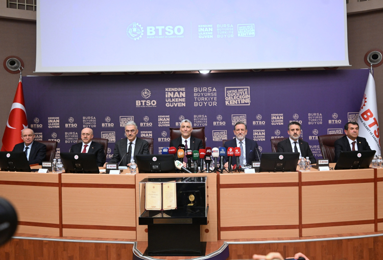 BTSO’nun Nisan Ayı Meclis Toplantısı, Oda Hizmet Binası’nda gerçekleştirildi. BTSO Yönetim Kurulu Başkanı İbrahim Burkay, Meclis Başkanı Ali Uğur ve BTSO meclis üyelerinin ev sahipliğinde gerçekleştirilen toplantıya Ticaret Bakanı Prof. Dr. Ömer Bolat, Bursa Valisi Erol Ayyıldız, Ticaret Bakan Yardımcısı Sezai Uçarmak, Bursa Büyükşehir Belediye Başkan Vekili Şahin Biba, bakanlık bürokratları ve ihracatçı birlik başkanları katıldı. Toplantıda konuşan Ticaret Bakanı Bolat, özellikle ihracatçıların rekabet gücünü artırmaya yönelik yeni vergi düzenlemeleri ve finansman imkânlarının kısa sürede hayata geçirileceğini belirtti.