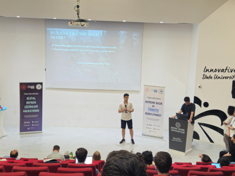 Bursa Teknik Üniversitesinde Endüstri ve Dijital Dönüşüm Topluluğu tarafından düzenlenen “Dijital Deprem Çözümleri Hackathonu” başarıyla tamamlandı. Yarışmada 40 öğrenci, 32 saat boyunca depreme yönelik dijital çözümler üretti.