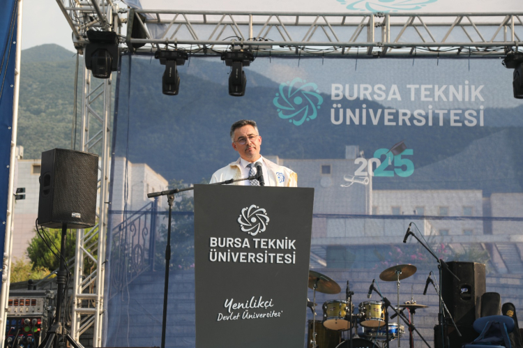 Bursa Teknik Üniversitesi (BTÜ) 2024-2025 Akademik Yılı Mezuniyet Töreni, coşkulu bir şekilde gerçekleşti. Üniversitenin 15’nci yıldönümünün de utlandığı törende, bine yakın öğrenci mezuniyet sevinci yaşayarak, diplomalarına kavuştu. Törende konuşan BTÜ Rektörü Prof. Dr. Naci Çağlar, “Mezuniyet, bizim için bir veda değil; yeni bir yol arkadaşlığının başlangıcıdır. Gelecek; sizin aklınızla, vicdanınızla ve iradenizle şekillenecek ve biz her zaman yanınızda olacağız” dedi.