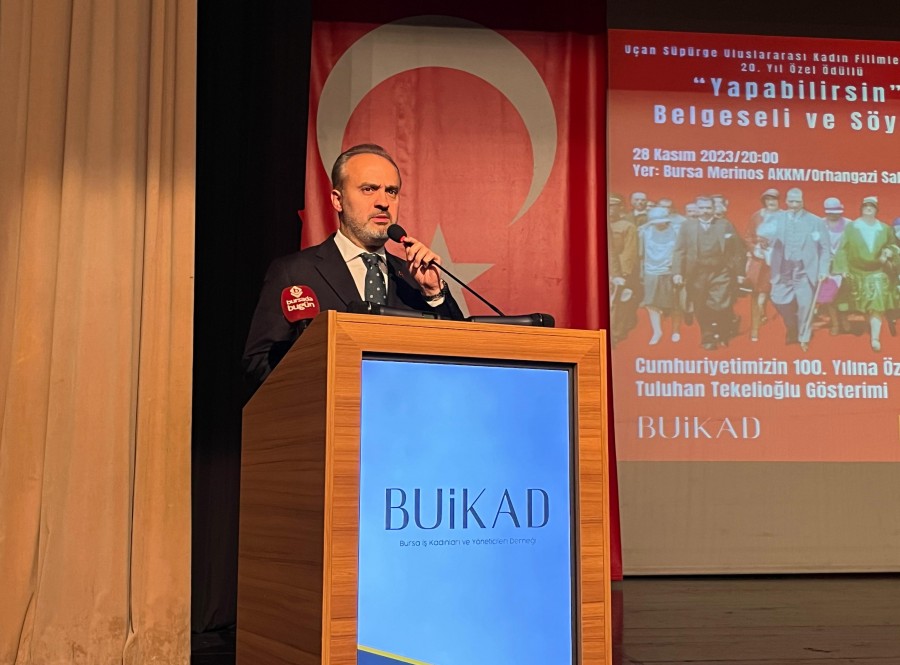 Bu yıl Cumhuriyetimizin yüzüncü yılı. Bir asır geçmiş. Başta Gazi Mustafa Kemal Atatürk olmak üzere kahramanlarımızı saygıyla anmak istiyorum. Kadınlar katkısı, katılımı çok önemlidir. Kadınların hayatın her alanında nitelikli hizmetler ettiğini görüyoruz. Ülkemizde kadın girişimci ailelerin ekonomik sorunlarını yükleniyor. Ülkemizin kalkınmasına ciddi destekler veriyor. Son zamanlarda kadın kooperatiflerimiz ciddi işler yapmaya başladılar. Bursa'da 6 tane kadın kooperatifi varken şimdi 46 tane kadın kooperatifi var. Bunların çatısı altında kadınlar birçok ürün üretiyorlar. Ciddi cirolar çıkarıyorlar. Kadın kooperatiflerimizin finansman, yer, tamir tadilat gibi durumlarda desteğimizi hep sunmaya çalışıyoruz. Kadınız biz mobil uygulaması da devam ettirdiğimiz çalışmalardan bir tanesi. E ticaret ile alakalı da önemli bir eğitim programı gerçekleştirdik. Ciddi yeni pazarlar kazanıldığını da söylemek istiyorum. Hem aile hem de ülke ekonomisine katkıda bulunan kadınlarımıza teşekkür ediyorum. Bugün de bu güzel organizasyon için herkese çok teşekkür ediyorum. Çok başarılı olmuş iş kadınlarını tanıdım. Sıfırdan başlayıp çok iyi yerlere gelmiş iş kadınları tanıdım. Azmini heyecanını koyan tüm kadınlarımızı yürekten kutluyorum.
