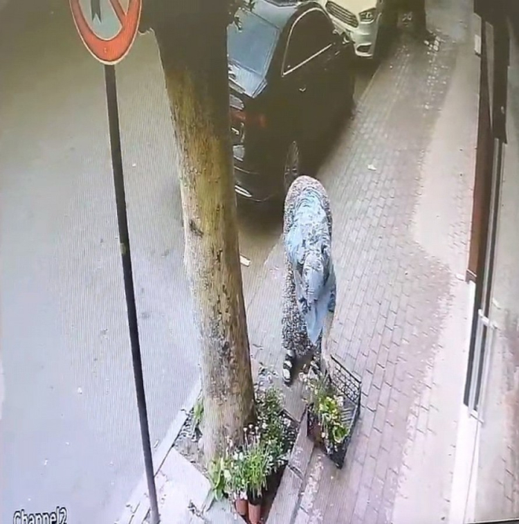 Kameralarda bir kadının iş yeri önündeki 10 adet papatya çiçeğini, sepete koyup, alıp gittiği görüldü.