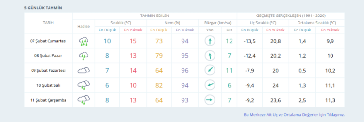 8 Şubat Pazar günü yağış şiddetini biraz azaltsa da kent genelinde aralıklı yağmurlar devam edecek. Sıcaklıklar 2-3 derece birden düşerek 13°C seviyelerine gerileyecek. Pazar günü özellikle akşam saatlerinde Uludağ eteklerinde sis ve pus görülebilir.