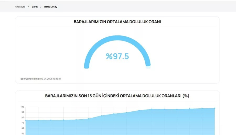 Yüzde 97,5 seviyesine yükselen doluluk oranı, özellikle yaz aylarında yaşanabilecek su sıkıntısına karşı büyük bir güvence oldu. Yetkililer, geçen sene yazın yaşanan su sıkıntısının bu yıl yaşanmaması adına vatandaşlara tasarruflu kullanım çağrılarını yineledi.