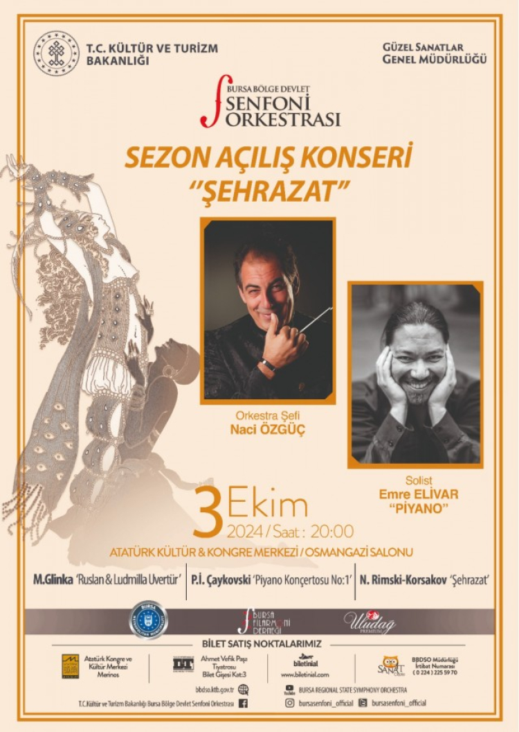 Bursa Bölge Devlet Senfoni Orkestrası (BBDSO), 2024-2025 sezonunun açılışını, Glinka, Çaykovski ve Rimski-Korsakov'un unutulmaz eserleriyle yapacak. 3 Ekim'de Glinka, Çaykovski ve Rimski-Korsakov'un Eserleri ile Unutulmaz Bir Gece adlı eser izleyiciye sunulacak. Konser, Mikhail Glinka'nın hızlı temposu ve enerjik yapısıyla dikkat çeken Ruslan ve Ludmilla Uvertürü ile başlayacak. Ardından, Çaykovski'nin dünyaca ünlü 1. Piyano Konçertosu, virtüöz piyanist Emre Elivar tarafından seslendirilecek. Eser, dramatik açılışı ve zengin melodik yapısıyla dinleyicileri derinden etkileyecek. Finalde ise, Rimski-Korsakov'un egzotik Şehrazat senfonik süiti, dinleyicileri Binbir Gece Masalları'nın büyüleyici dünyasına davet edecek. Şef Naci Özgüç yönetimindeki BBDSO, bu unutulmaz müzik gecesini etkileyici bir şekilde taçlandıracak. Konser, 3 Ekim 2024 Perşembe günü saat 20.00'de Atatürk Kongre ve Kültür Merkezi'nde gerçekleşecek. Biletler BBDSO gişeleri ve Biletinial'dan temin edilebilir.