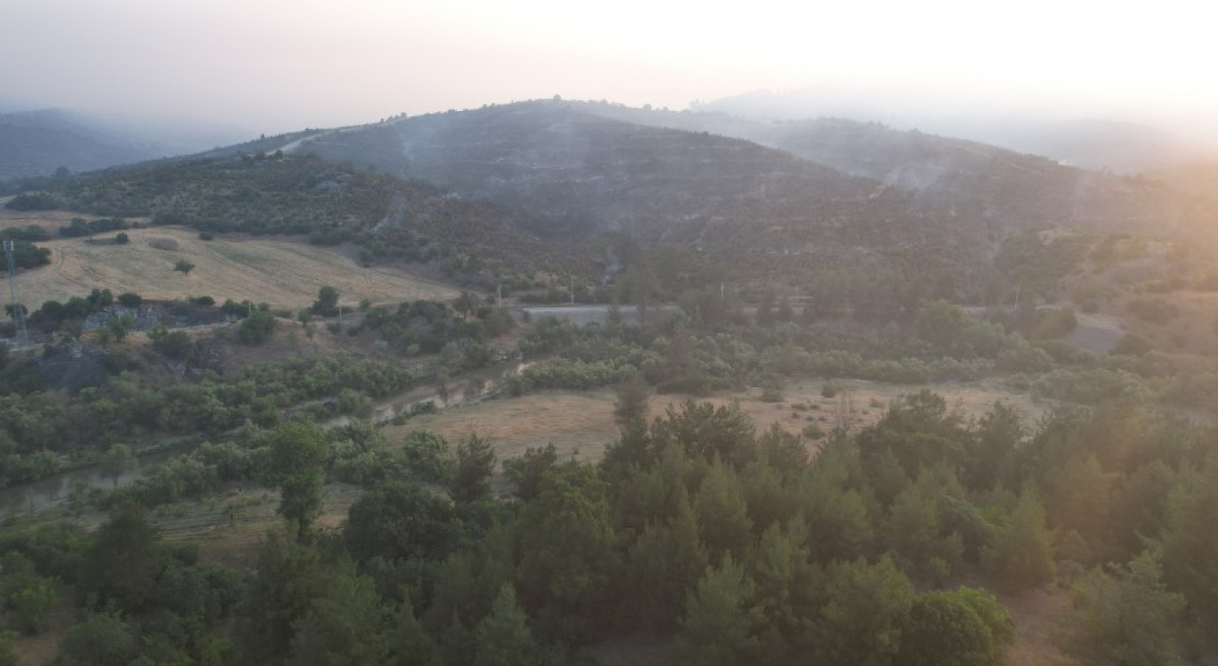 Bursa Büyükorhan'da çıkan yangın günün ilk ışıklarıyla görüntülendi