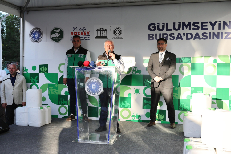 Üretimi artırmanın yanında tarlada ürünü bırakmamak için pazar araştırmalarını da sürdürdüklerini anlatan Başkan Bozbey, Bursa’daki 730 civarındaki köyde hala çiftçilik, tarım ve hayvancılık yapıldığına dikkat çekti. Topraklarını bırakıp kente gelmemeleri için üreticiyi desteklediklerini söyleyen Başkan Bozbey, “Biz çiftçimizi böyle seviyoruz. Sadece selam vererek değil, kol kola girerek mücadeleyi yürütüyoruz. Bir taraftan da çevremizi koruyoruz. Bu ürünler sayesinde doğayı korumuş, suyu tasarruflu kullanmayı öğrenmiş oluyoruz. Çevreci anlayışla yatırımlarımızı yapıyoruz. Gübrelerin nasıl doğru kullanılacağı, daha az suyla nasıl daha fazla üretim yapılacağı üzerine eğitimlerimizi de sürdürüyoruz. Tüm çiftçilerimize selam olsun. Önümüzdeki hafta Kurban Bayramı’na ulaşacağız. Bazı yerlerde şapla ilgili sorunlar var. Bunlara dikkat edelim. Kurban atıklarının da gelişi güzel doğaya atılmamasını istiyorum. Tesisimiz çiftçilerimize hayırlı olsun” dedi.