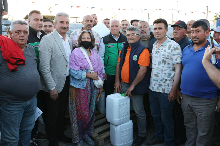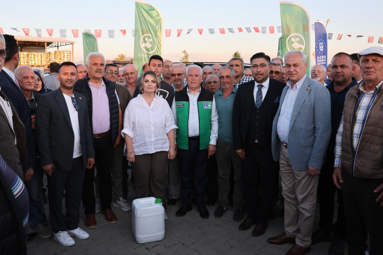 Bursa Büyükşehir Belediye Başkanı Mustafa Bozbey, kendisinin de bir köy çocuğu olduğunu, tarımı, hayvancılığı ve tarlada çalışmanın ne demek olduğunu bildiğini söyledi. Göreve geldikleri ilk günden itibaren üreticileri destekleyen projeleri uygulamaya başladıklarını belirten Başkan Mustafa Bozbey, Tarım Plast Fabrikası’nı hayata geçirerek damla sulama borularını üretip dağıttıklarını, sıvı gübre tesisini de açmanın mutluluğunu yaşadıklarını ifade etti. Üretilen sıvı gübrelerin Mustafakemalpaşa Belediyesi’ne ait alanlarda denendiğini dile getiren Başkan Bozbey, “Çiftçilerimizin daha fazla üretmesi, ürettiğinin karşılığını alması için mücadele ediyoruz. Bunun için tüm sorumlulukları üstleniyoruz. Yeni bir proje üzerinde de çalışıyoruz. BUSKİ’ye ait arıtma tesislerinden çıkan çamurlardan gübre üretmeye başlayacağız. Çıkan ürünleri yine üreticilerimize vereceğiz. Bursalı çiftçi, üretimiyle ve aldığı desteklerle Türkiye’de örnek olacak. Yapacak gücümüz ve bilgi birikimimiz var. Pazartesi gününden itibaren mazotla ilgili talepleri almaya başlayacağız. Çiftçimize mazot desteği de yapacağız. Üreticimizin tarlasını boş bırakmaması için çalışıyoruz” dedi.