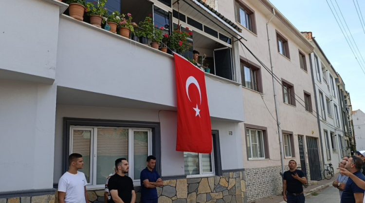 Şehit polis müdürü Muhsin Aydemir'in Mesudiye Mahallesi'ndeki baba ocağına Türk Bayrağı asıldı.