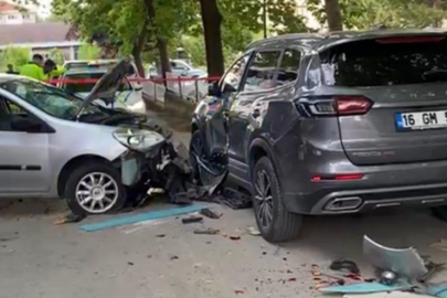 Bursa'da meydana gelen kazada bir araç, önce bankete ardından park halindeki araca çarptı.
