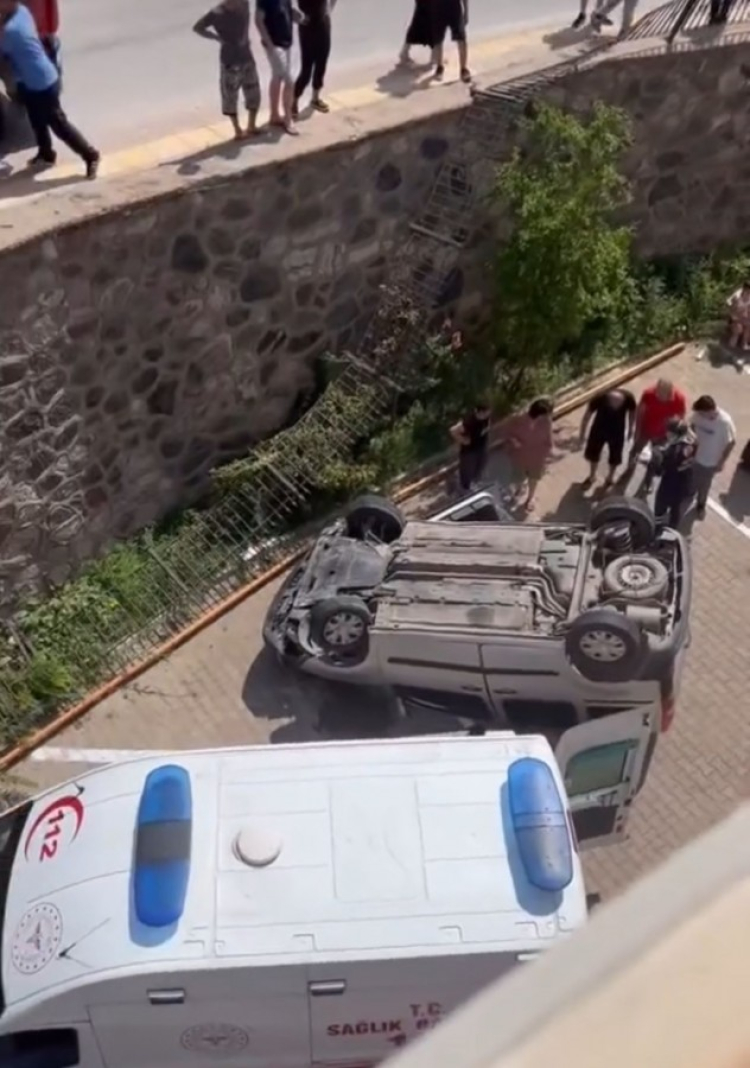 Bursa'nın Kestel ilçesinde bir araç kaza yaptı. Kaza yapan araç sitenin içine düştü. Kazada 3 kişi yaralandı.