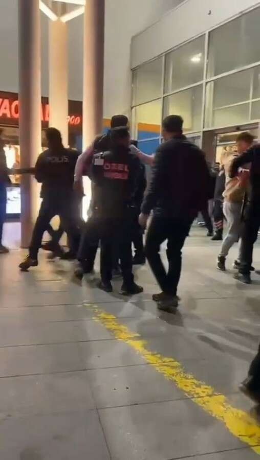 Bursa'da bulunan Korupark Alışveriş Merkezi'nde başlayıp dışarı taşan gençler arasındaki kavga kameralara yansırken; yaralananlar ambulanslarla hastaneye kaldırıldı.