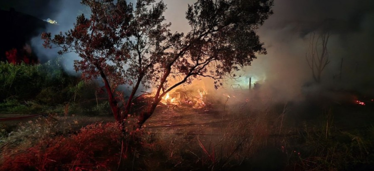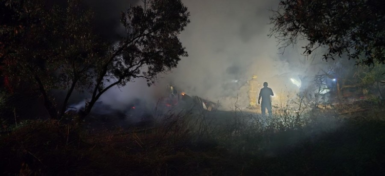 Bursa'nın Mudanya ilçesine bağlı Göynüklü Mahallesi'nde, zeytinlik alanda bulunan bağ evi alevlere teslim oldu.