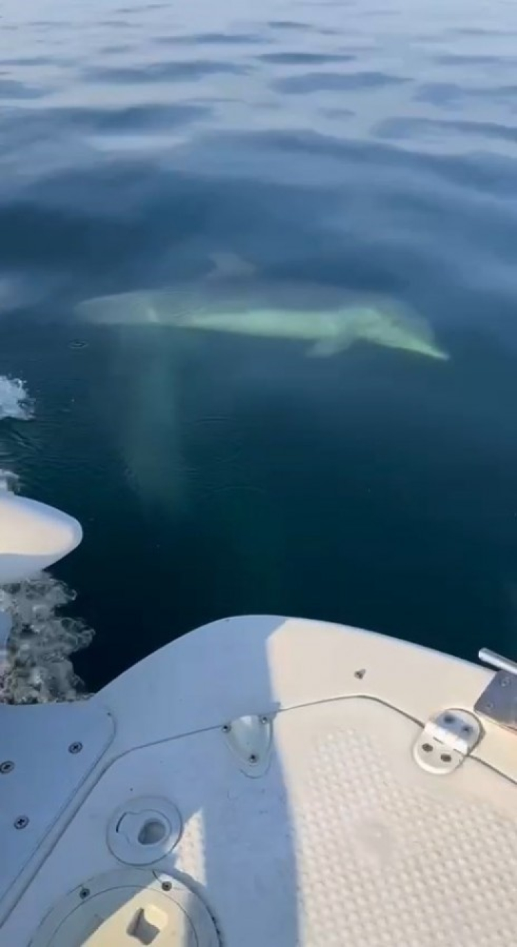 Ara ara tekneden uzaklaşan yunusların, bir süre sonra yeniden teknenin yanına gelerek balıkçıya eşlik etmesi dikkat çekti.