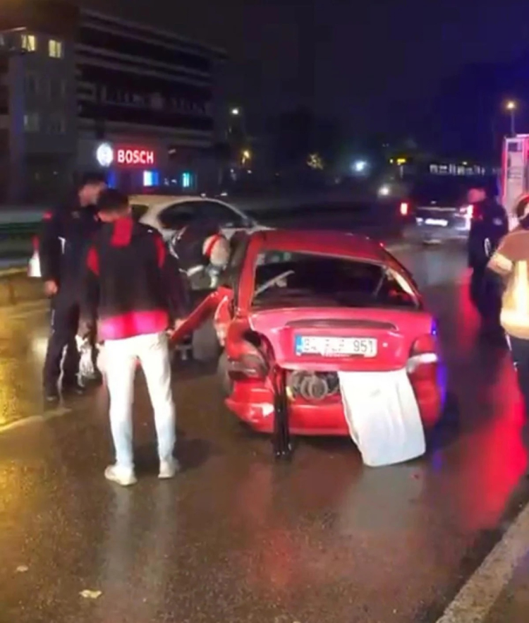 Bursa'nın Yıldırım ilçesi Yiğitler Mahallesi'nde Ankara yönüne giderken yağmur nedeniyle kayganlaşan yolda sürücüsünün kontrolünü yitirdiği otomobil, önce bariyerlere ardından da kaldırıma çarptı.