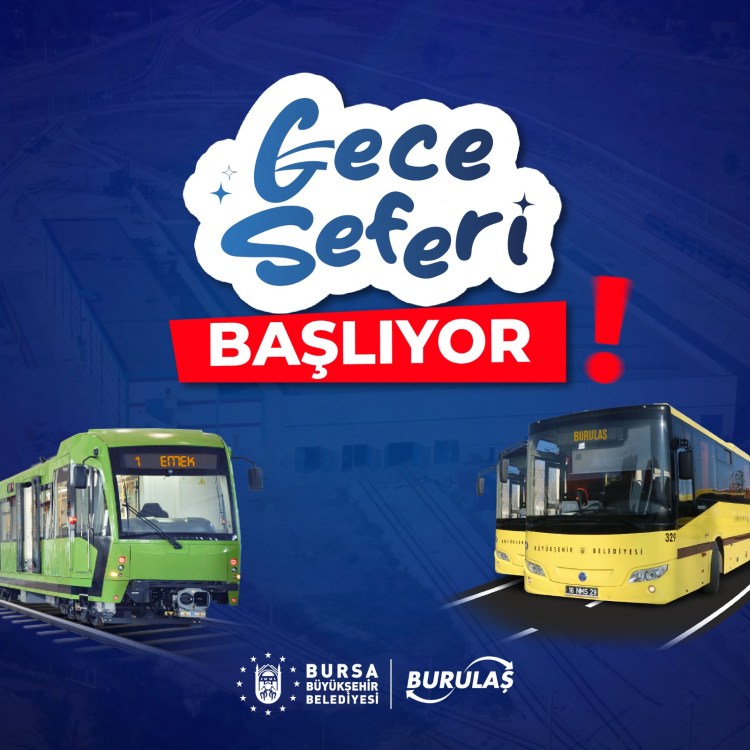 Öte yandan Bursaray'da bu hafta sonu başlamak üzere Cumartesi’yi Pazar’a bağlayan her gece 30 dakika aralıklarla sabaha kadar kesintisiz ulaşım sağlanacak. Şehir içi otobüsler de Cumartesi hariç tüm günler Emek, Kestel ve Üniversite istasyonlarından saat 00:15’te başlayarak 30 dakika aralıklar ile BursaRay güzergahında saat 02:00’a kadar hizmet verecek.