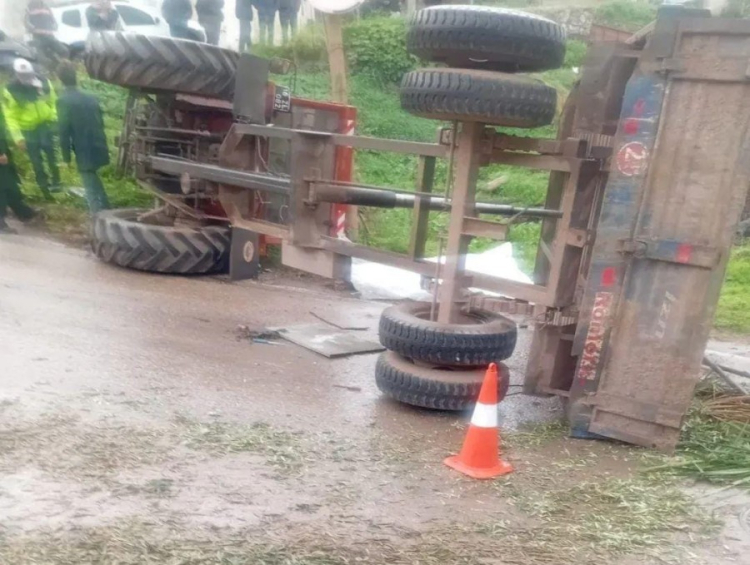 Kontrolden çıkan traktör devrilirken, olay yerine sağlık ve jandarma ekipleri sevk edildi.