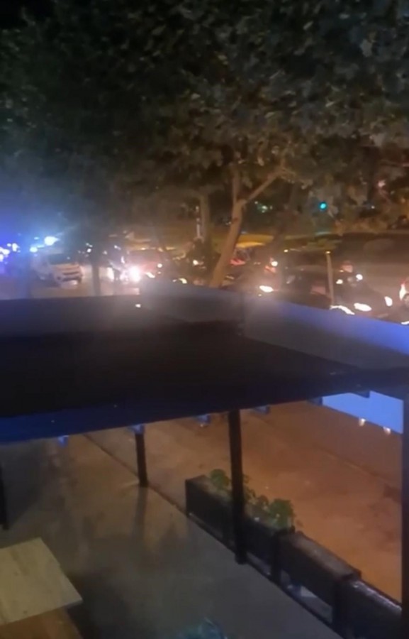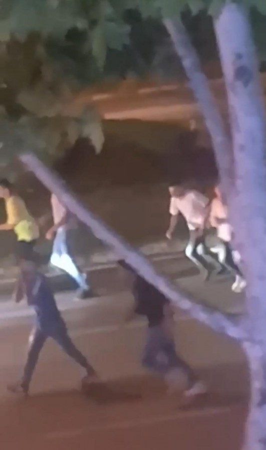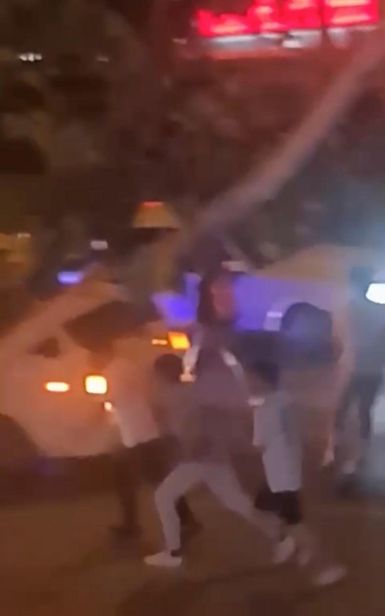 Çevredekilerin korna ile uyarılarına aldırmayan kalabalık, polis ekiplerinin sirenini görünce hızla kaçmaya başladılar. O anlar ise kameraya saniye saniye yansıdı.