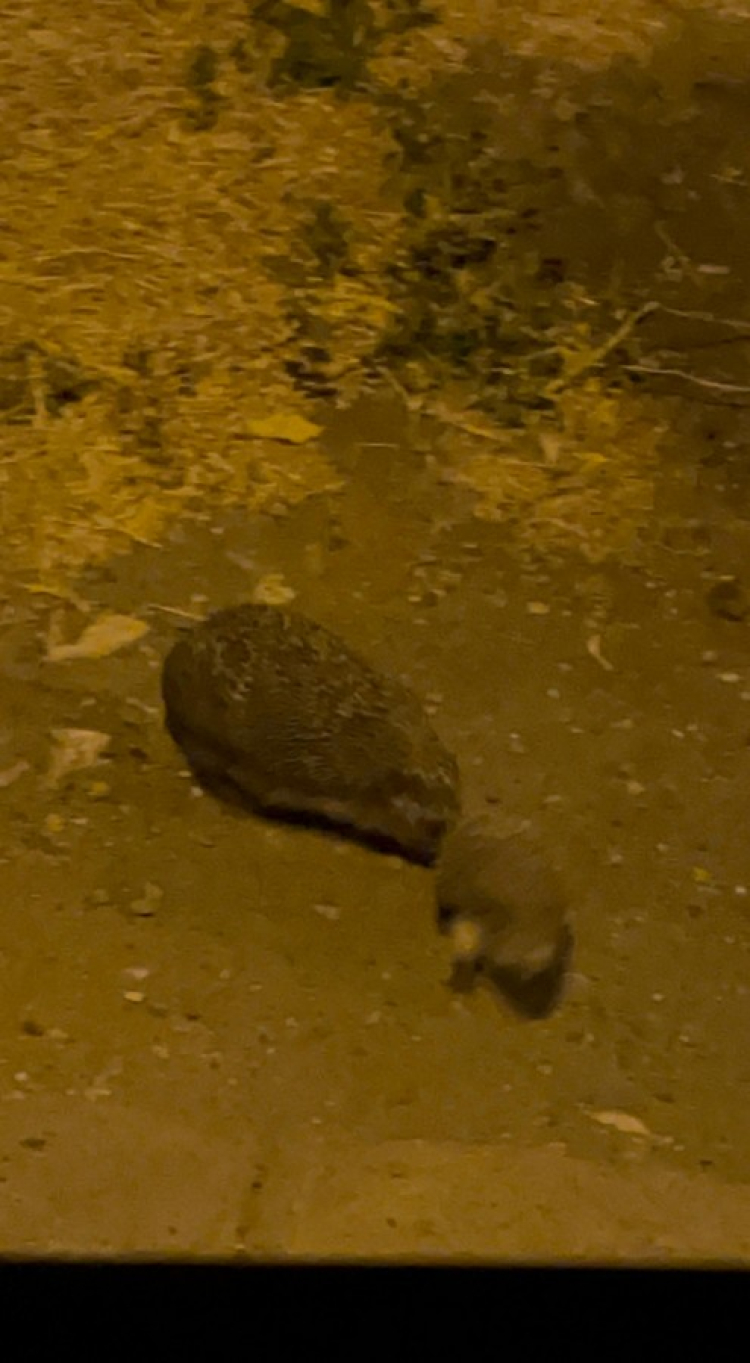 Küplüpınar Mahallesi'ndeki bir kirpinin ise oyun oynarcasına yavrusunun peşinde gitmesi mahalle sakinlerinin yüzlerini güldürdü.
