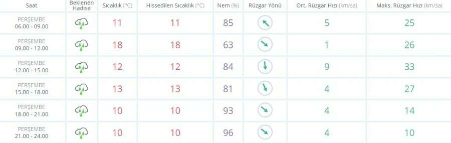 Çok bulutlu, aralıklı yağmur ve sağanak yağışlı geçeceği tahmin ediliyor. Yağışların; doğusunda yerel olarak kuvvetli olması bekleniyor.