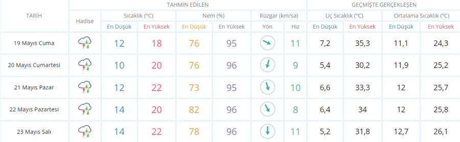 Parçalı ve çok bulutlu, doğu kesimlerinin yerel olmak üzere sağanak ve gök gürültülü sağanak yağışlı geçeceği tahmin ediliyor. Rüzgarın, doğusunda güney ve güneybatı yönlerden kuvvetli ve kısa süreli fırtına şeklinde (40-70 km/saat) esmesi bekleniyor. Bölgenin güneydoğusunda toz taşınımı görüleceği tahmin ediliyor.