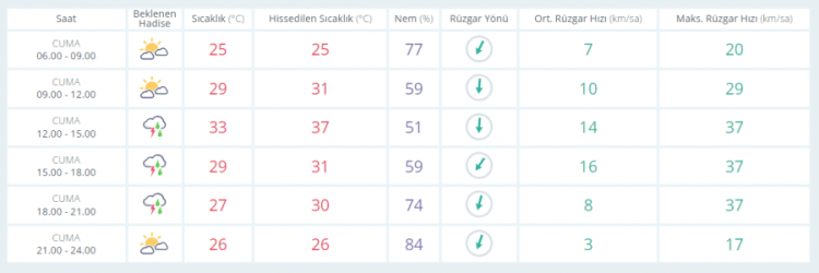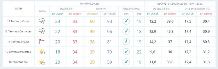 Meteoroloji Genel Müdürlüğü (MGM) tarafından yapılan son değerlendirmelere göre, 12 Temmuz 2024 Cuma günü ve 5 günlük hava durumu detayları şöyle;