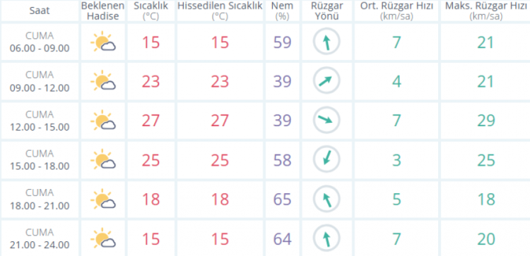Meteoroloji'den Bursa için yayınlanan rapora göre Cuma günü (bugün) için az bulutlu bir hava beklenirken sıcaklıklar en yüksek 27 dereceyken en düşük sıcaklık ise 10 derece.