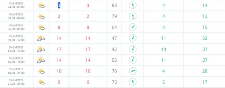 PAZARTESİ günü sıcaklık en düşük 2, en yüksek 14 derece parçalı bulutlu