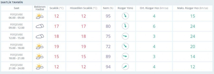 Sabah 12 derece olan hava sıcaklığı öğle saatlerinde 18 dereceye kadar tırmanırken, akşam saatlerinde termometreler 12 derece oluyor.