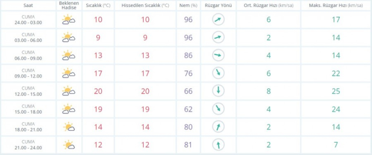 CUMA günü sıcaklık en düşük 9, en yüksek 20 derece bulutlu