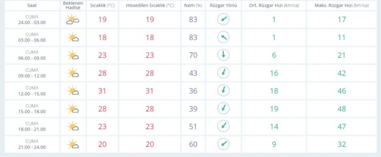 CUMA günü sıcaklık en düşük 18, en yüksek 31 derece parçalı bulutlu