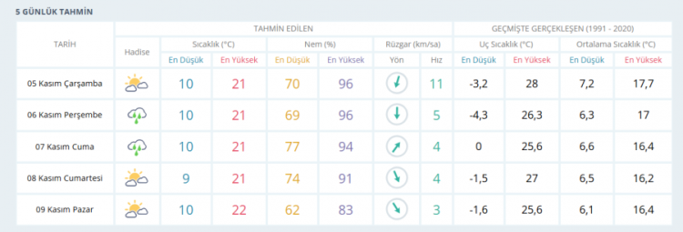 5 Kasım Çarşamba: Çarşamba günü Bursa'da açık ve güneşli bir havanın olacağı açıklandı. Sıcaklık 21 derece.