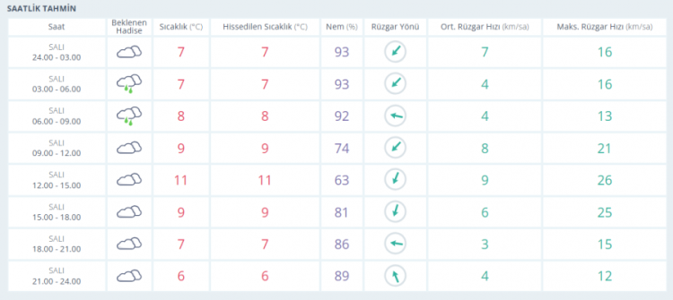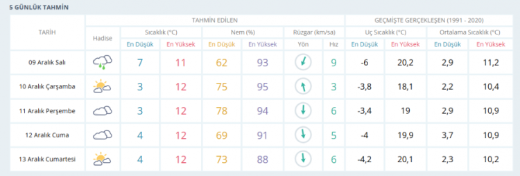 9 Aralık Salı: Salı günü Bursa'da yağışlı havalar devam ediyor. Sıcaklıklar bir önceki güne göre 2 derece daha düşüyor.