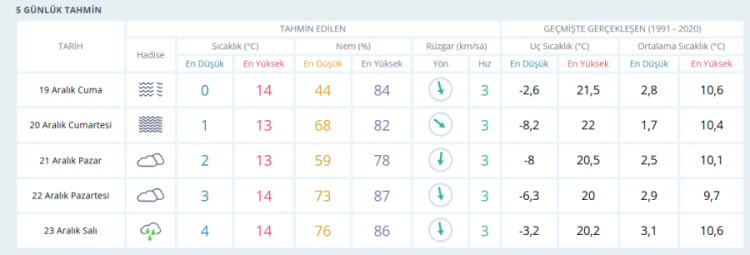 21 Aralık Pazar: Pazar günü Bursa'da kapalı ve bulutlu bir hava olacak. Sıcaklık önceki günlerde olduğu gibi 13 derece seviyesinde.