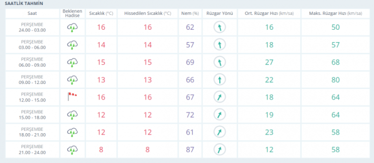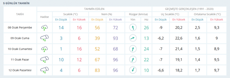 8 Ocak Perşembe: Perşembe günü de Bursa'da yağışlar devam ediyor. Sıcaklıklar 16 derece seviyesinde.