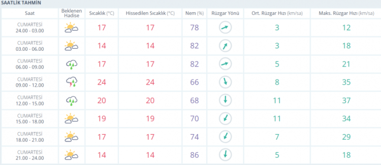 CUMARTESİ günü sıcaklık en düşük 14, en yüksek 23 derece gökgürültülü yağmurlu