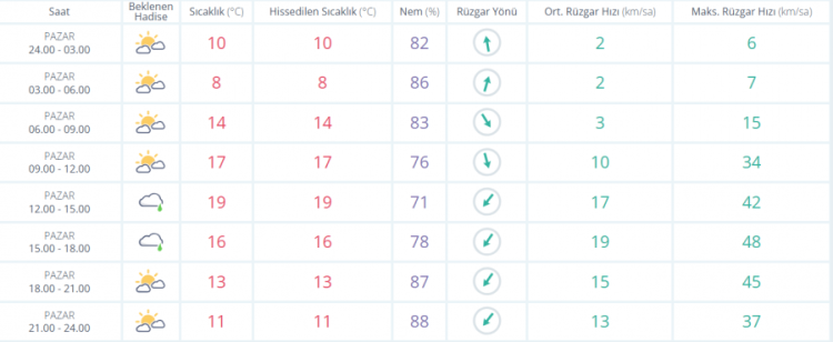 Sabah 14 derece olan hava sıcaklığı öğle saatlerinde 19 dereceye kadar tırmanırken, akşam saatlerinde termometreler 11 derece oluyor.