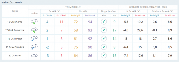 16 Ocak Cuma: Cuma günü Bursa'da sabahın ilk saatlerinde kapalı ve bulutlu bir hava olacak. Öğleden sonra ise hafif yağmur geçişleri bekleniyor.