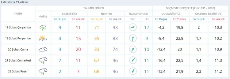 21 Şubat Cumartesi: Cumartesi günü Bursa'ya yağış geri dönüyor. Hava sıcaklığı ise 11 dereceye kadar iniyor.