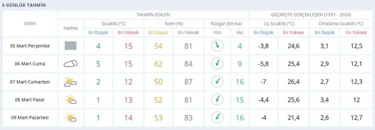 ???? 5 Günlük Hava Tahmini (5-9 Mart)