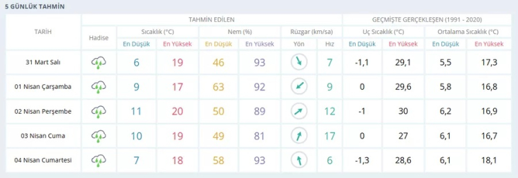 Haftanın ilk gününde kent genelinde gök gürültülü sağanak yağış bekleniyor. En düşük sıcaklık 6, en yüksek sıcaklık ise 19 derece olacak.